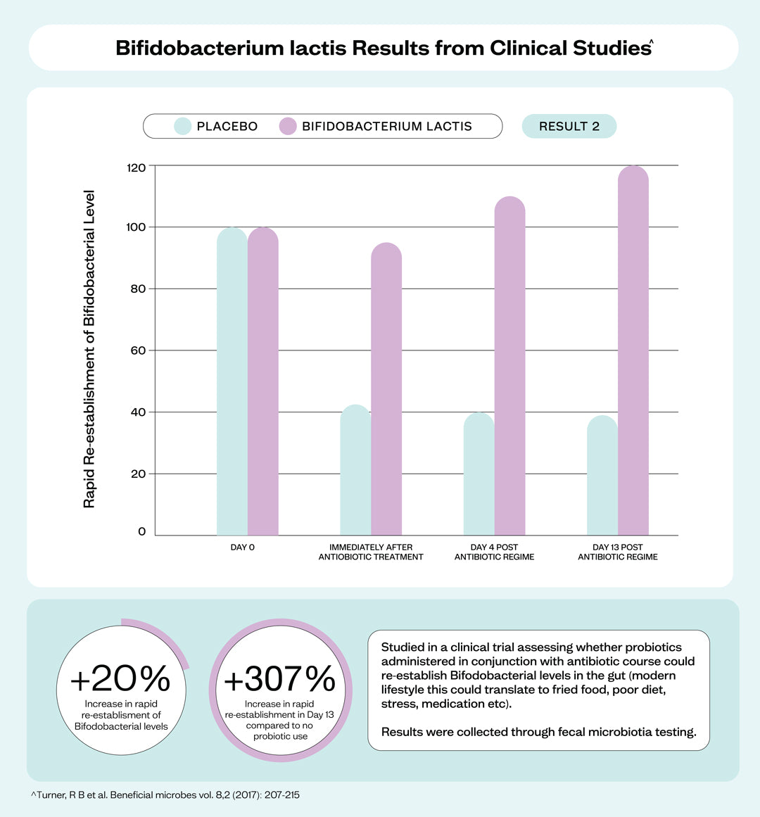 Clinical results through fecal microbiota testing to assess gut bifidobacterial level after administered antibiotic course which in modern lifestyle translate to medication, poor diet (fried food), stress and other gut disruptors: